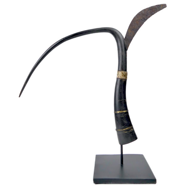 Coupeur de riz khmer traditionnel en corne de buffle fer et laiton Cambodge mi-XXe