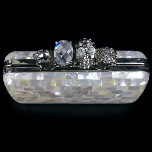 Mini sac à main Skulls en métal cuir cristal et nacre Sac de soirée Chic Rock Bad Girl