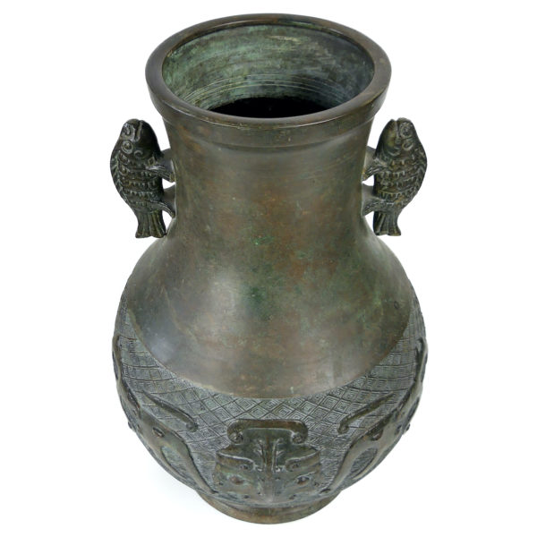 Vase ventru japonais en bronze patiné vert de gris Période Meiji
