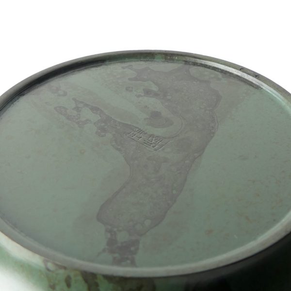 Vase bronze japonais ventru vert patiné signé Japon Shōwa