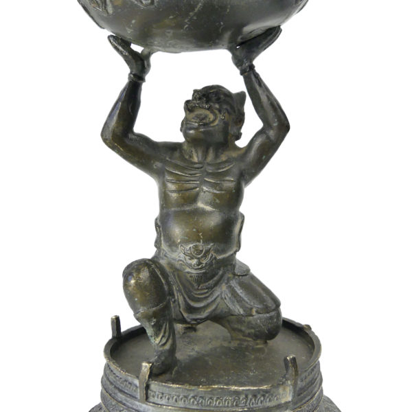 Brûle-encens Oni démon hurlant en bronze Encensoir kōro Début Shōwa