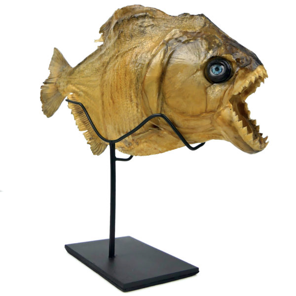 Grand piranha naturalisé aux yeux de poupée sur pied Serrasalminae