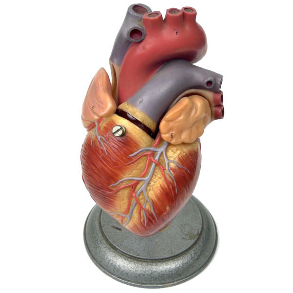 Cœur humain vintage modèle anatomique didactique en 2 parties sur socle