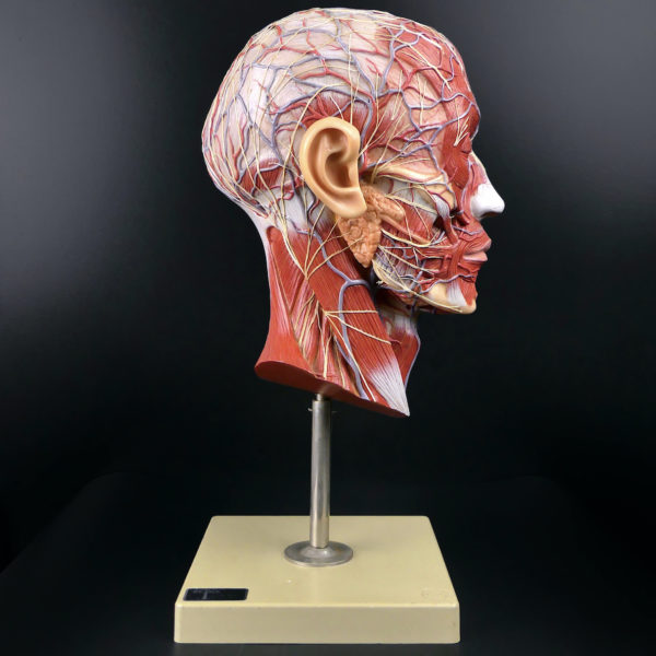 1450,00€870,00€Ecorché demi-tête SOMSO didactique sur pied – Modèle anatomique allemand de collection – Allemagne – Neurologie – Cabinet de curiosités – 18 x 18 x 41 cm – 1.180 kg