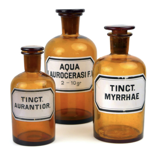 149,00€89,40€3 flacons anciens de pharmacie en verre fumé orange foncé – Récipients anciens d’apothicaire – Teodor Torosiewicz – Cabinet de curiosités – 1.490 kg