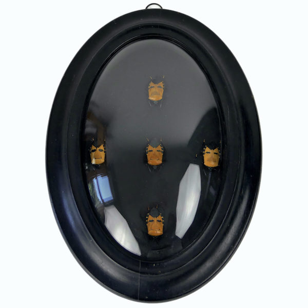 Cinq Catacanthus incarnatus sous verre bombé et cadre noir Asie du Sud-Est