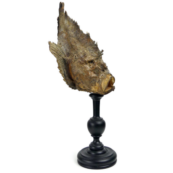 Squelette de caméléon casqué dans son cadre noir sur pied