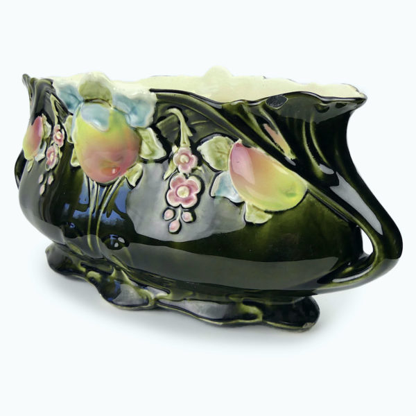 Jardinière ovale Art nouveau Gustave de Bruyn barbotine Faïencerie de Fives