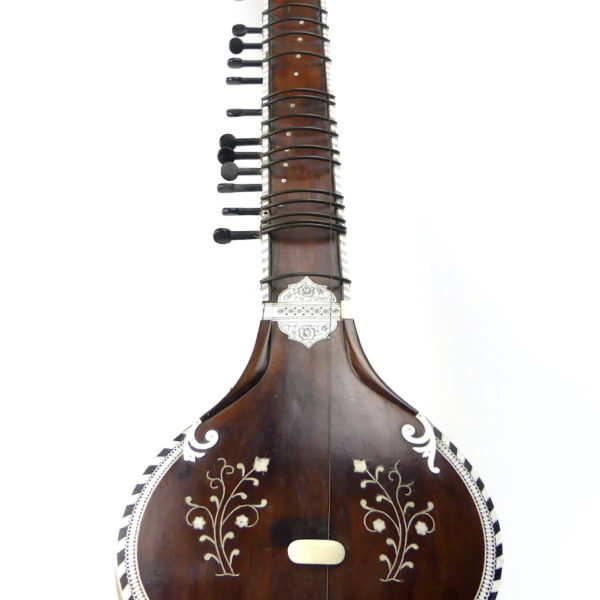 Sitar indien traditionnel en bois décoré de motifs floraux