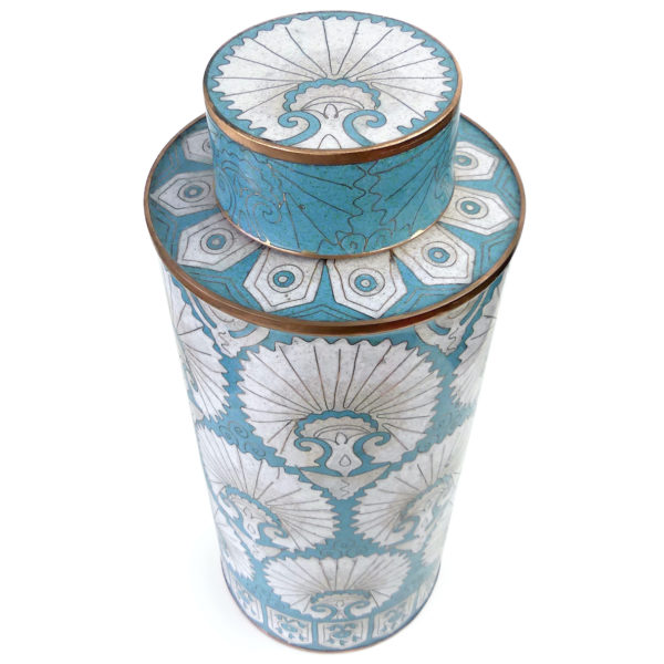 Grand pot cloisonné éventails turkmen bleu et blanc Fabienne Jouvin Paris