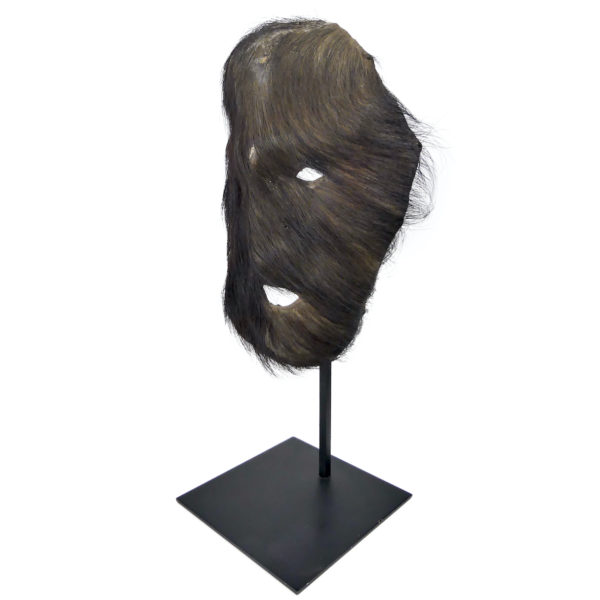 Masque Gurung de chaman en peau de Yak sur socle Népal