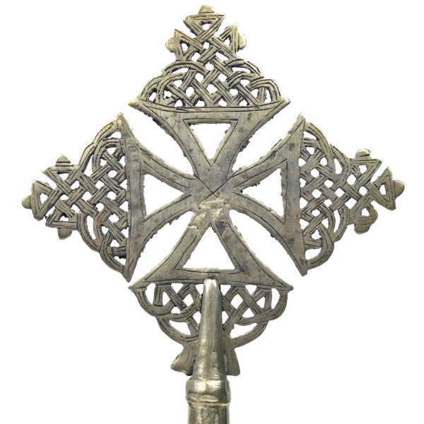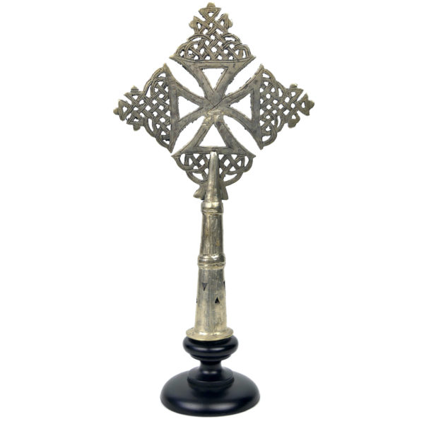 Petite croix copte orthodoxe éthiopienne argentée sur pied Objet liturgique