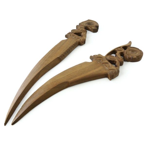Deux couteaux Tiki sculptés en Miro Artisanat polynésien