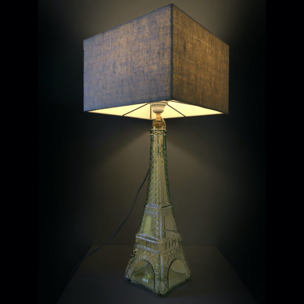 Grande lampe tour Eiffel en verre et abat-jour carré Souvenir de Paris