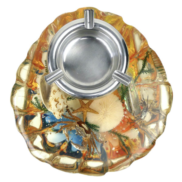 Inclusion Bord de mer coquillages crabes et étoile de mer des années 60