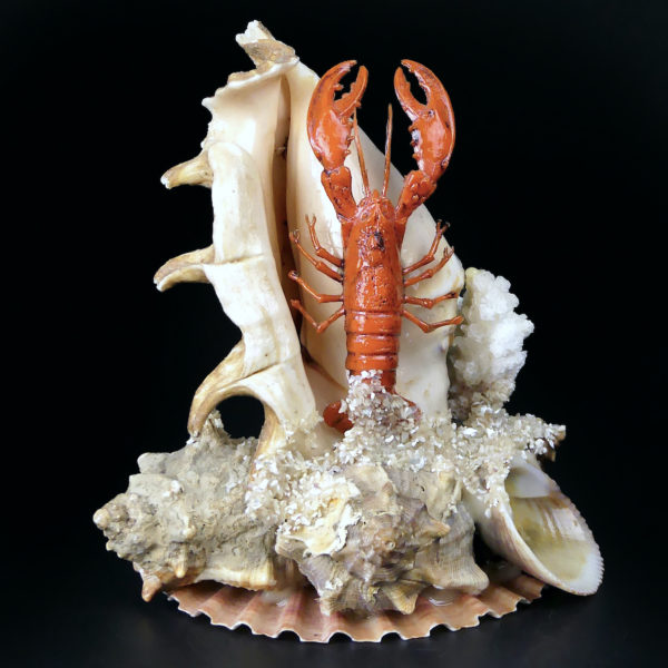 Composition bord de mer coquillages et crustacé Souvenir de vacances Années 60
