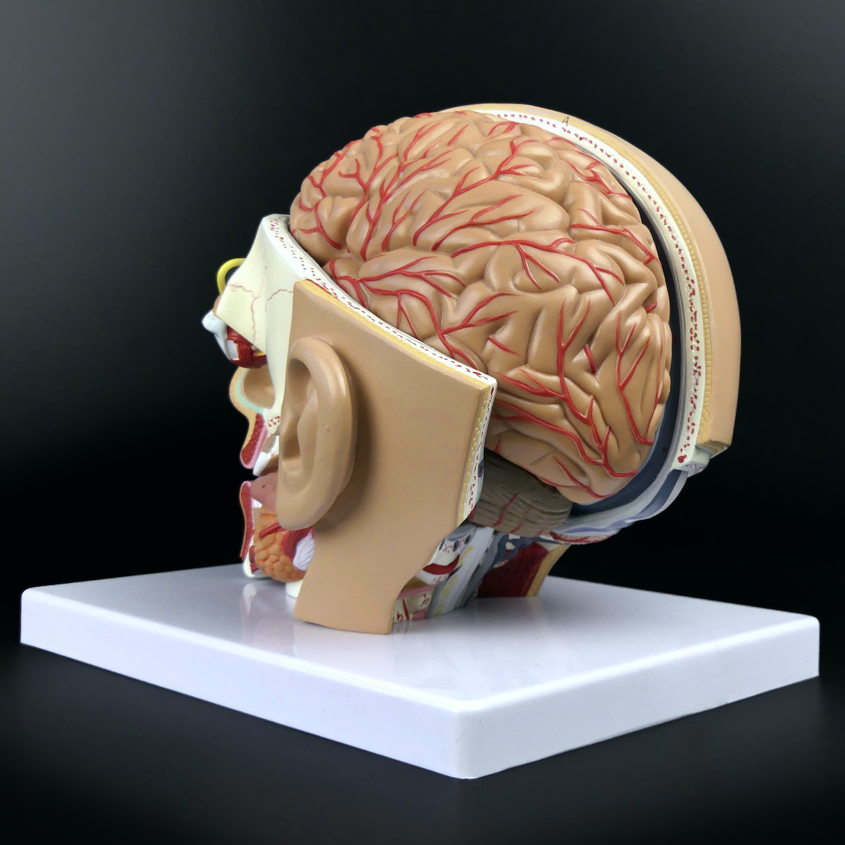 Ecorché didactique tête humaine sur socle en PVC blanc – Modèle anatomique – Fin XXe – Neurologie – Cabinet de curiosités