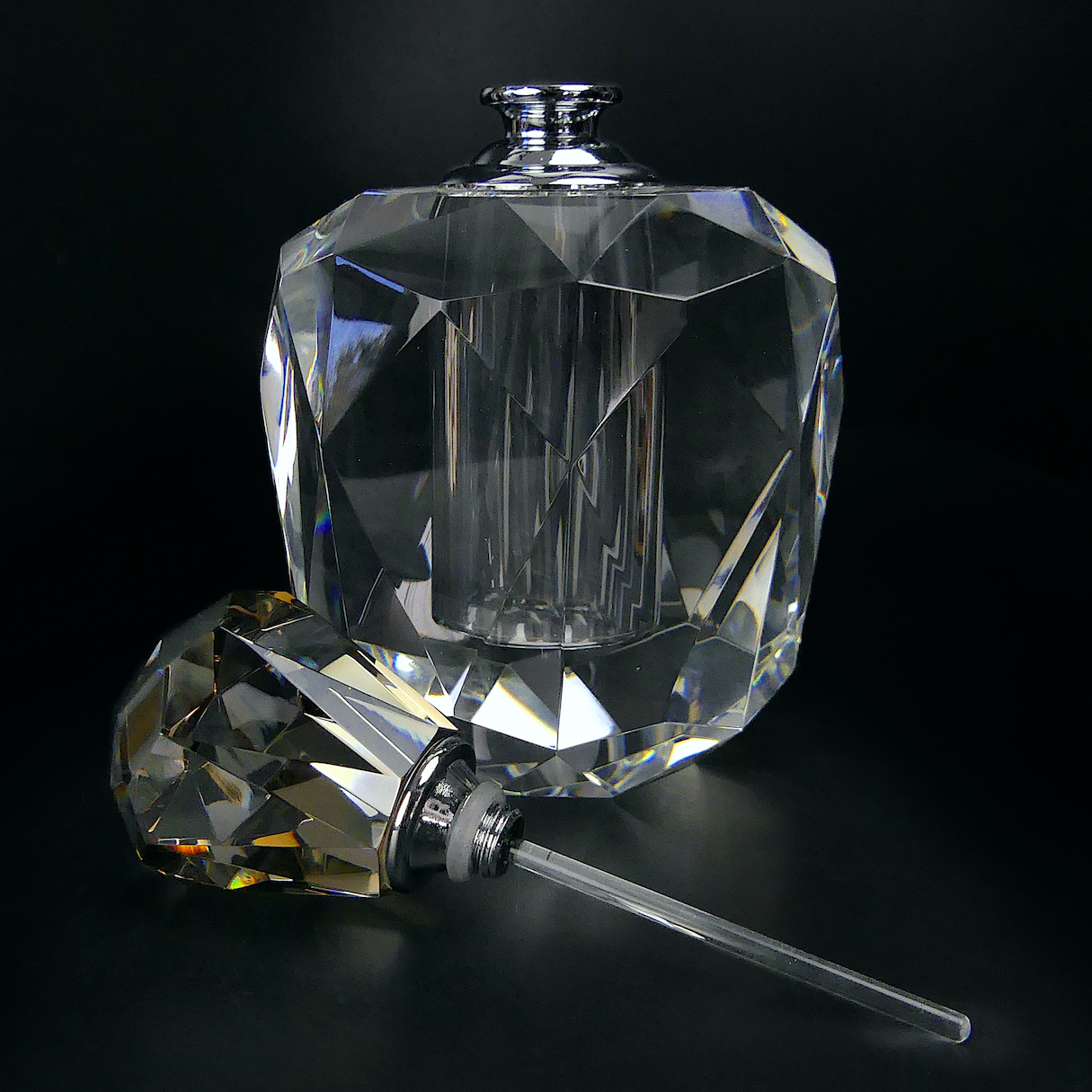 Très beau flacon de parfumeur en cristal véritable travaillé à la main par un maître cristallier italien : un must !