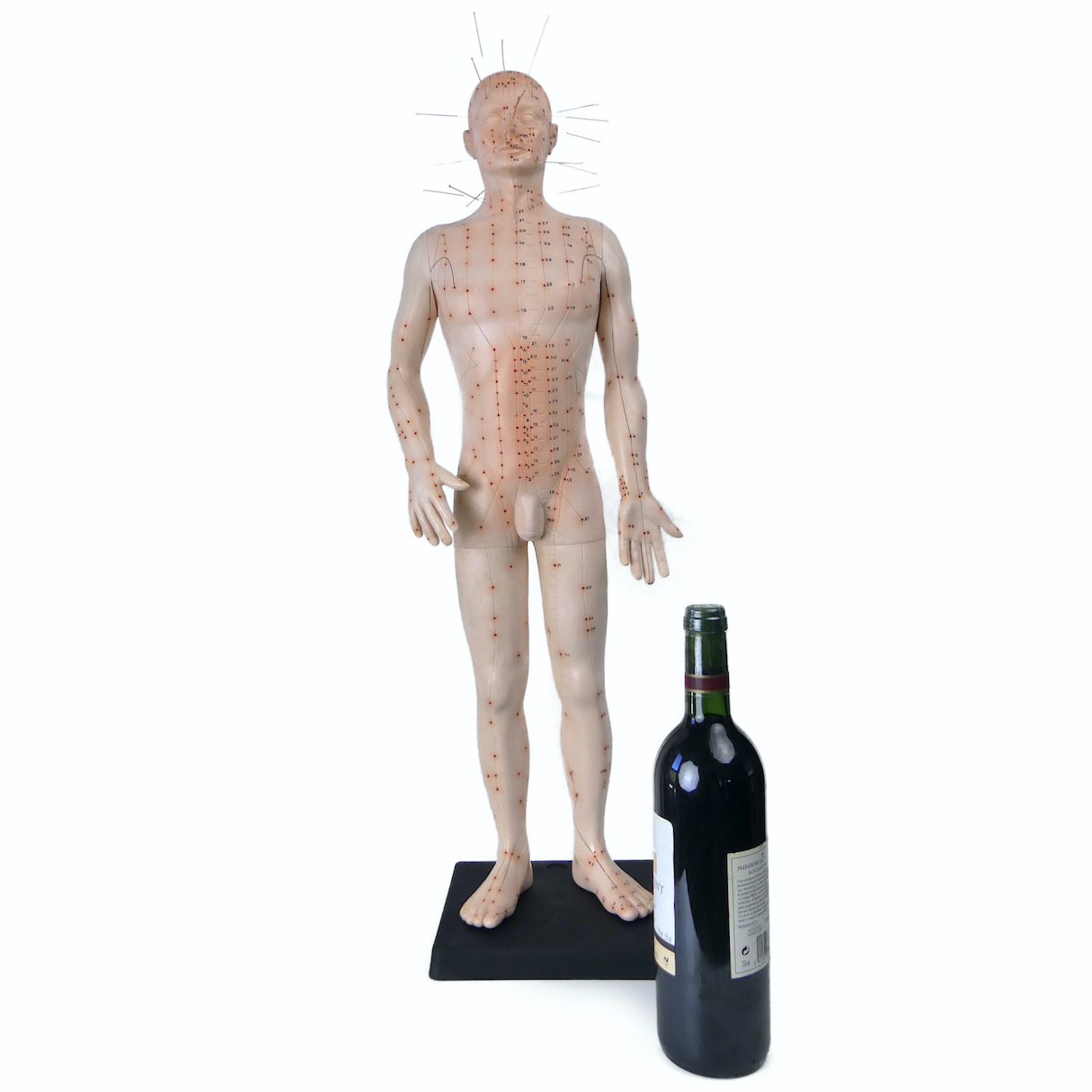 Grand mannequin d’acupuncture homme en PVC et aiguilles – Médecine traditionnelle Chinoise – Modèle didactique des années 80