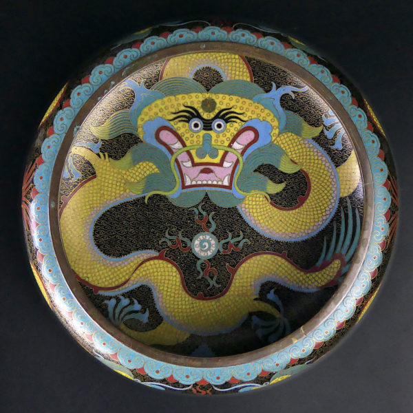 Le couvercle est bombé avec un large bord plat, et un petit lion bleu finement sculpté se tient tout en haut (poignée)