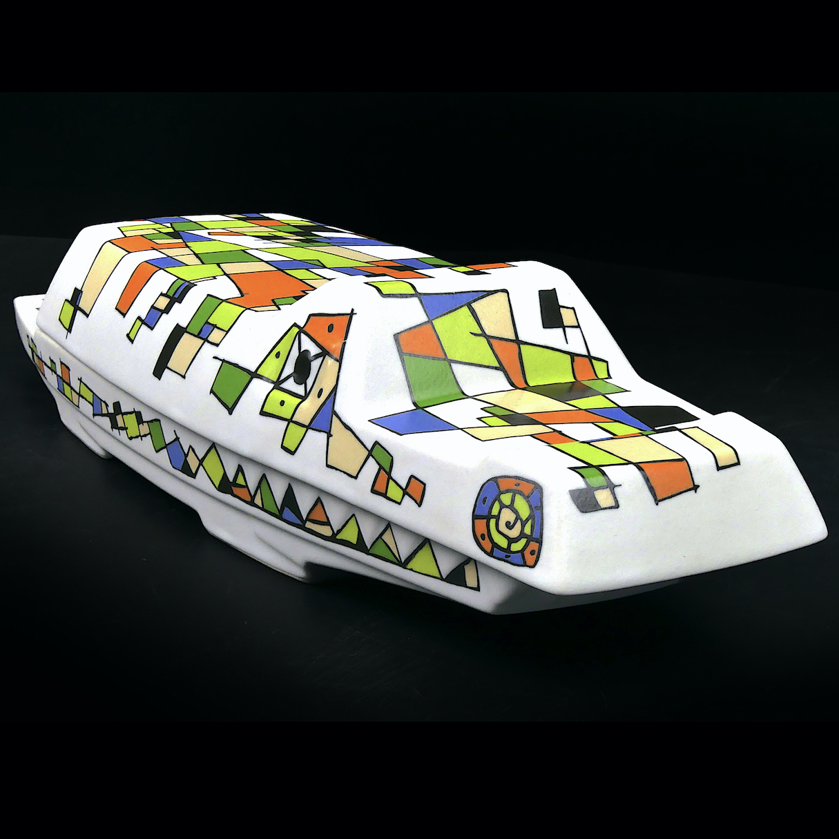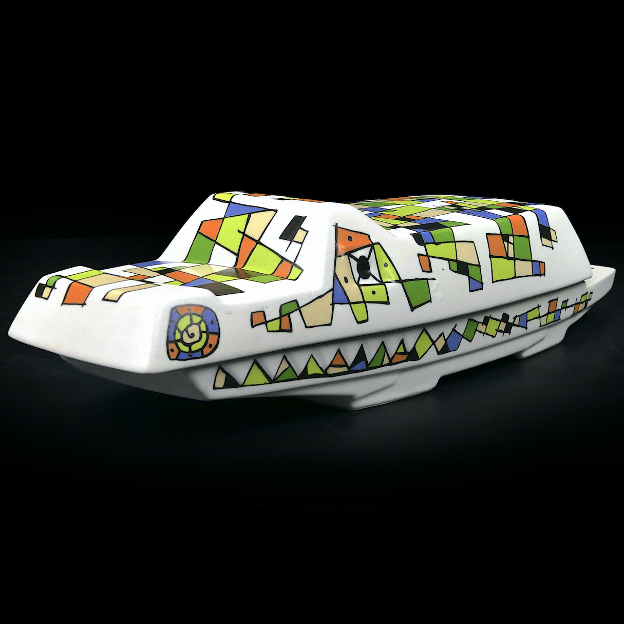 Terrine Crocodile moderniste en faïence au décor mosaïque coloré de 1994 signée Javier Mariscal – Rosenthal – Allemagne