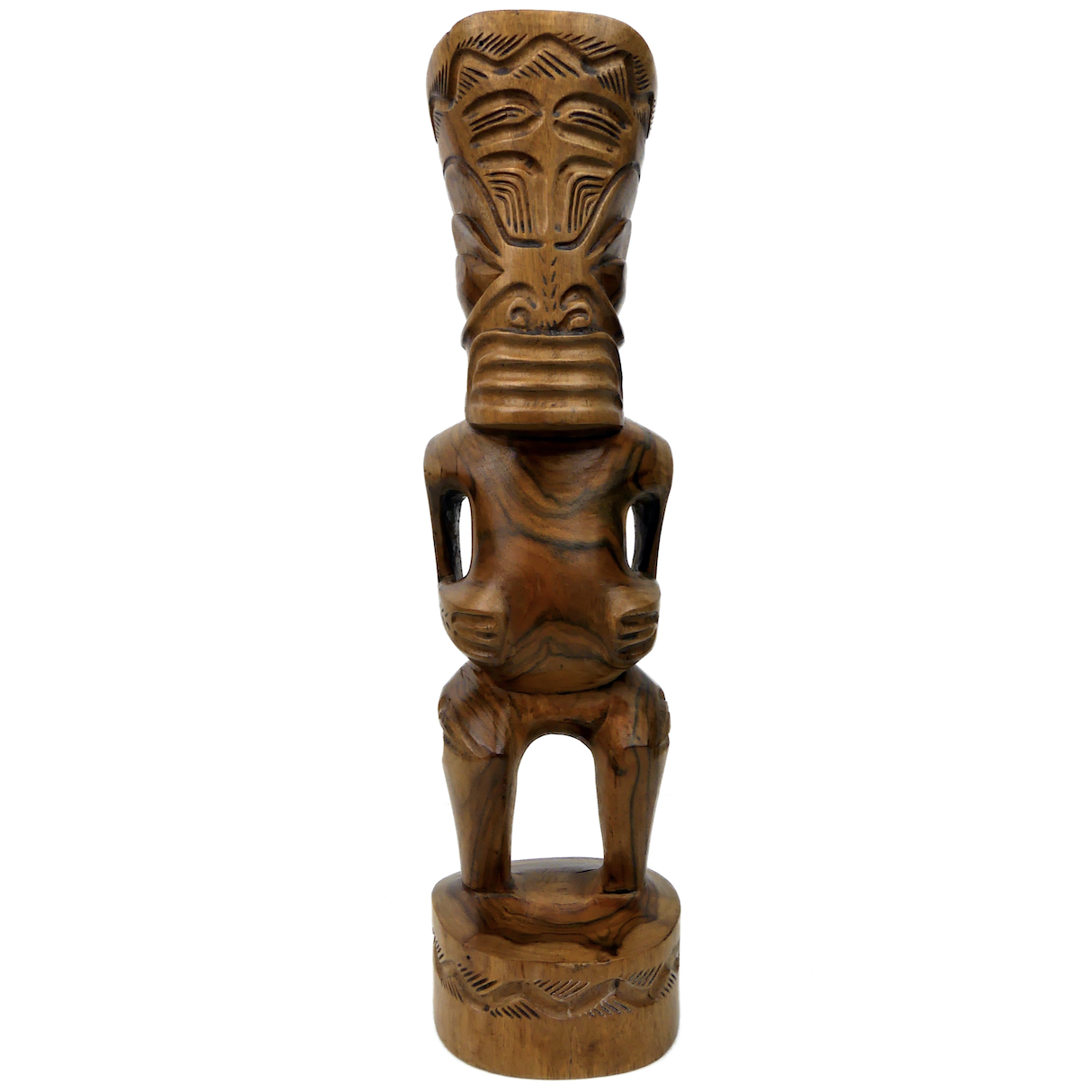 Tiki tahitien couronné en bois de rose d’Océanie à belle patine