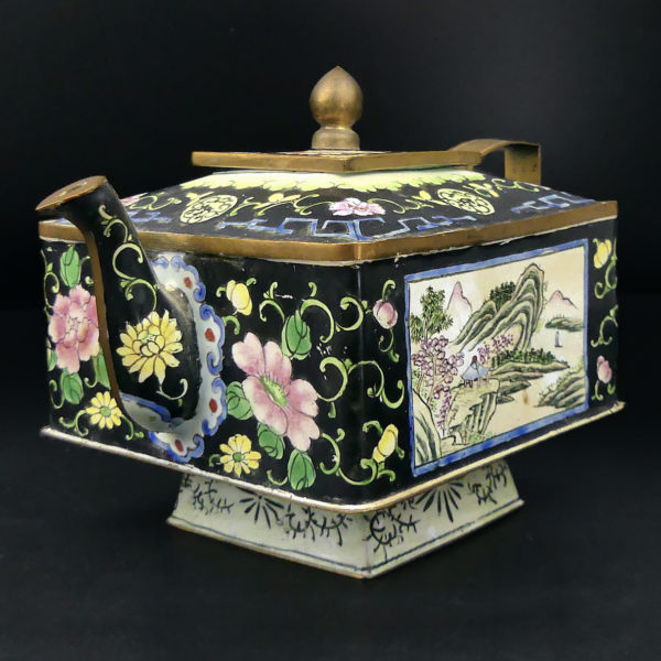 Petite théière chinoise Canton cuivre émaillé peint Yangcai Famille Noire XIXe