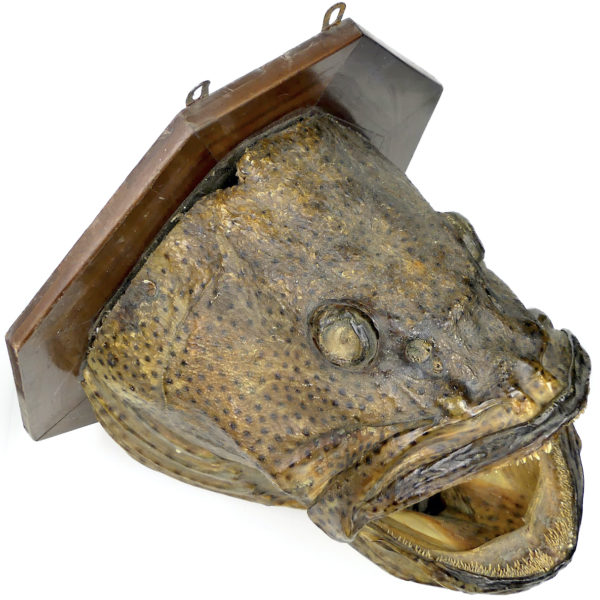 Grande tête de mérou naturalisé sur socle Trophée de pêche vintage