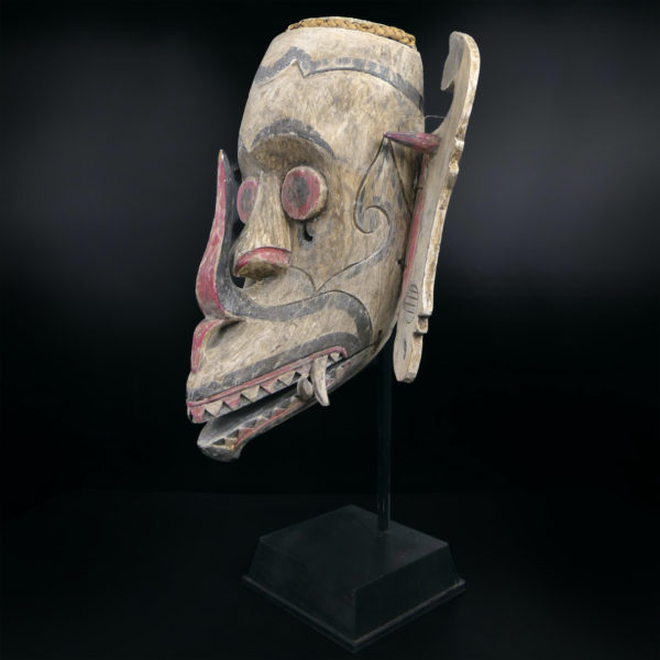 Grand masque Dayak de Bornéo en bois léger polychrome
