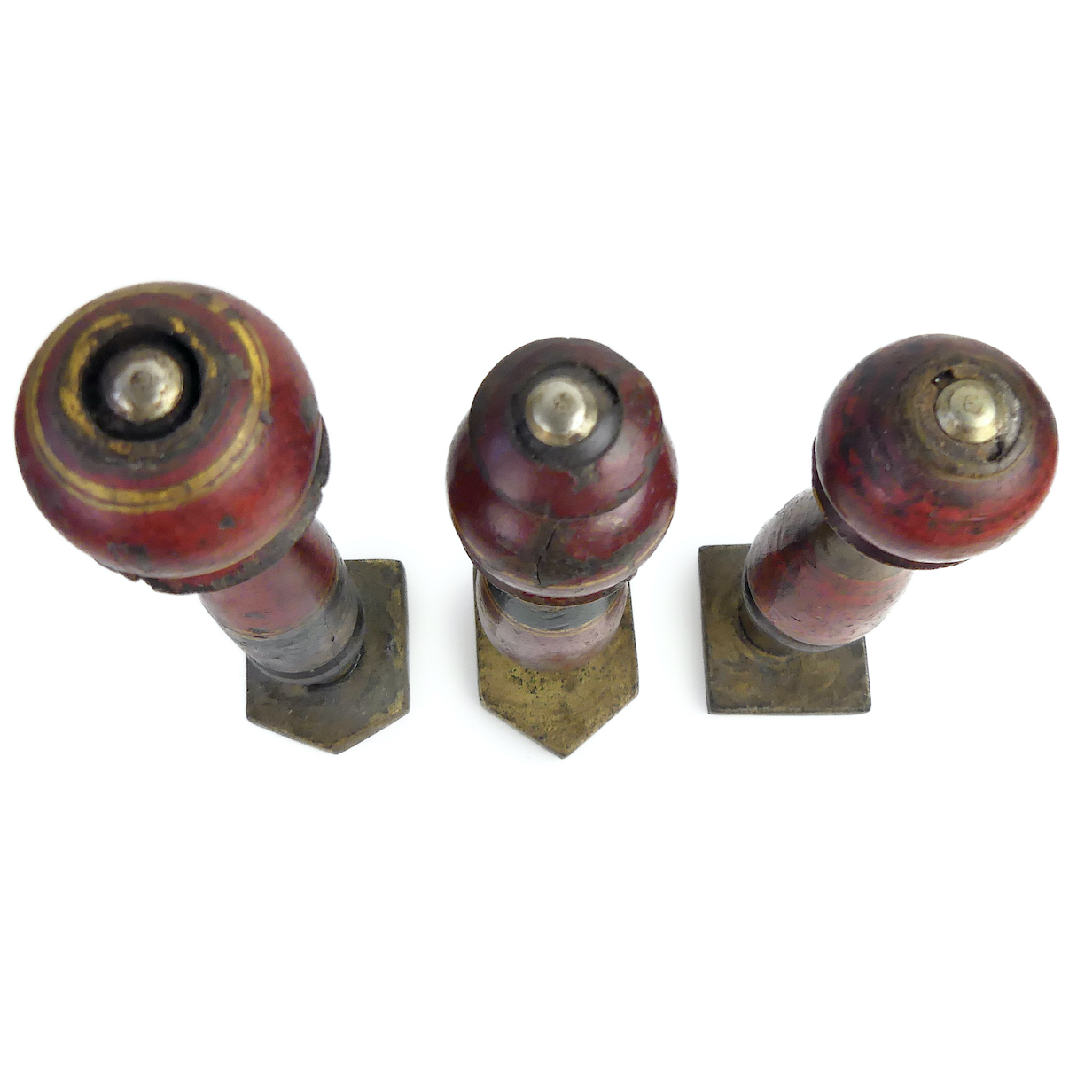 3 tampons à cire indiens anciens en bois tournés peints et cuivre – Inde – Collection ethnique – Décoration d’intérieur