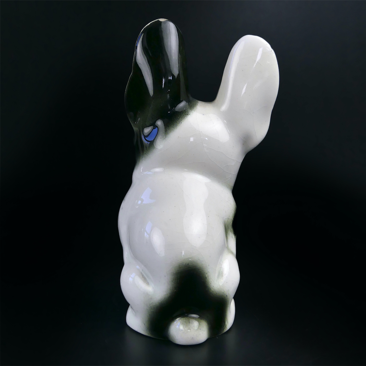 Bouledogue français assis en porcelaine – Mi-XXe – Déco rétro – Porcelaine animalière de collection – Curiosité décalée