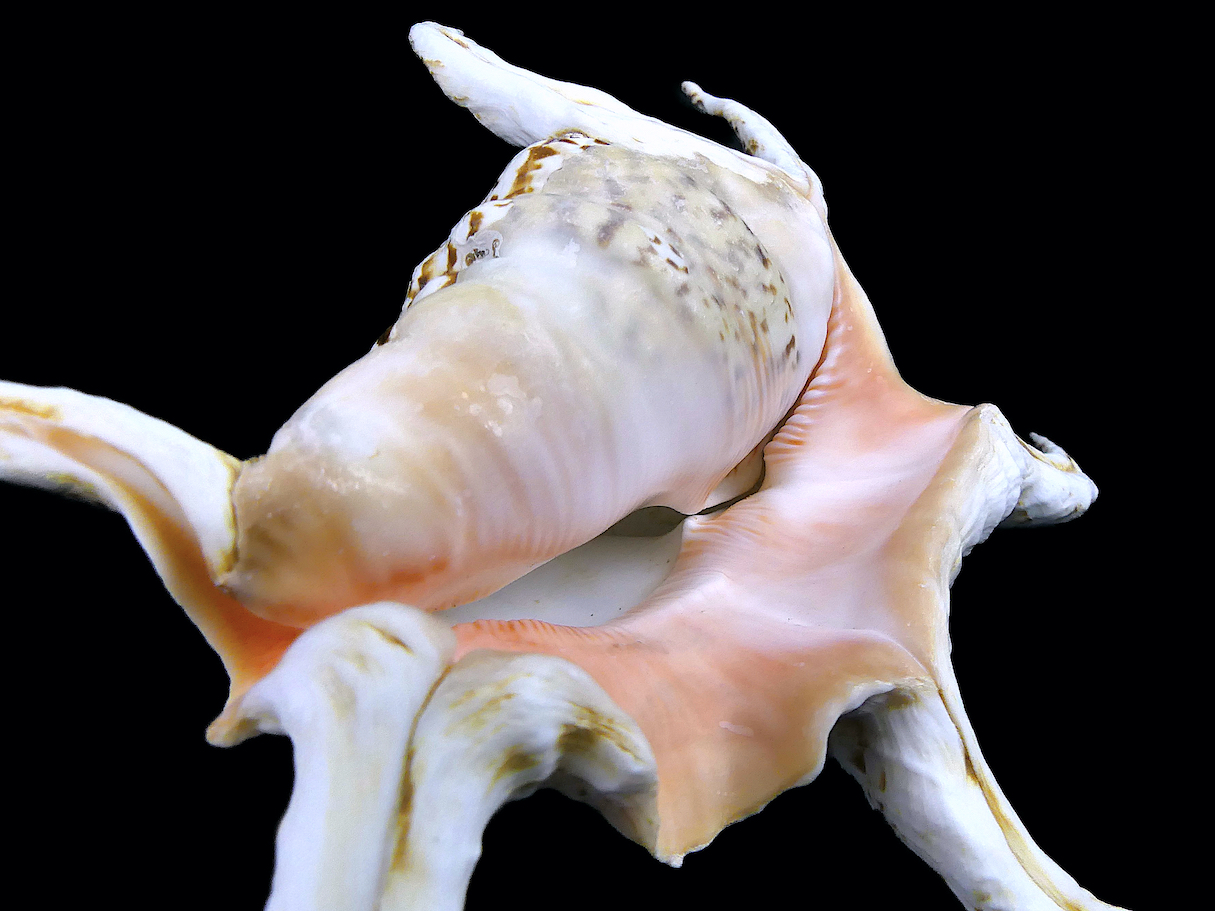 La caractéristique la plus étonnante de cet strombe est la présence chez les adultes, surtout les femelles, de grandes excroissances d’où son surnom « strombe araignée ».