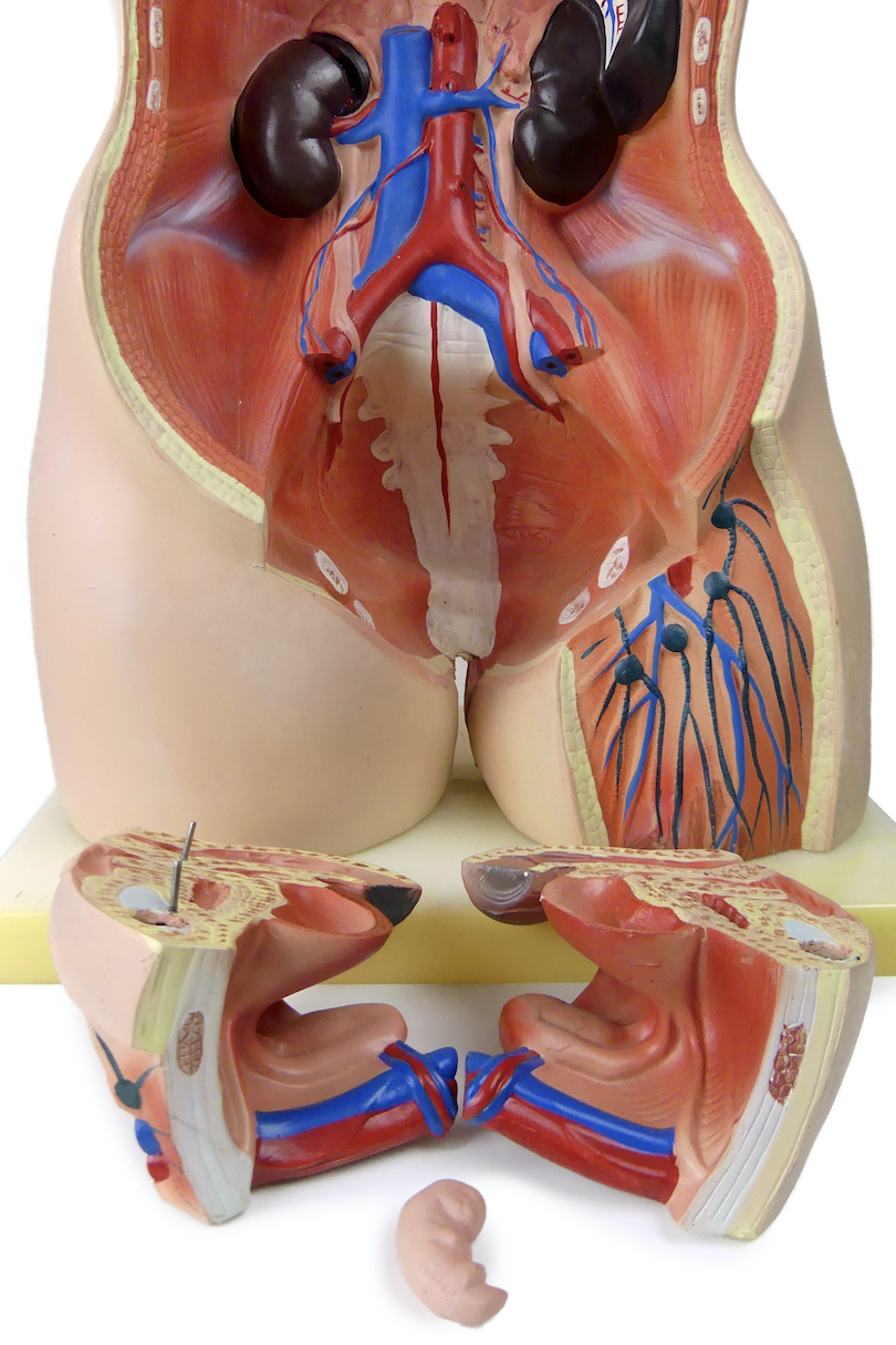 Modèle anatomique unisexe polychrome composé de plusieurs éléments, comme le torse, la cage thoracique féminine, la tête, le globe oculaire, le cerveau, la colonne vertébrale avec le segment vertébral, les vertèbres, les nerfs spinaux, les poumons, les organes génitaux masculins (en 2 parties), féminins (en 3 parties, avec le fœtus), le système digestif,… (voir photos)