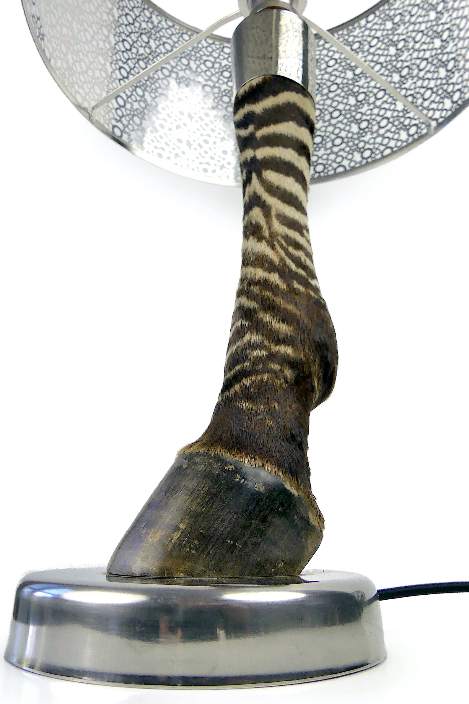 Grande lampe zèbre sur socle et abat-jour en métal – Lampe design – Cabinet de curiosités – Socle : Ø 17 x 3 cm – Ø 40 x 66 cm – 2.467 kg
