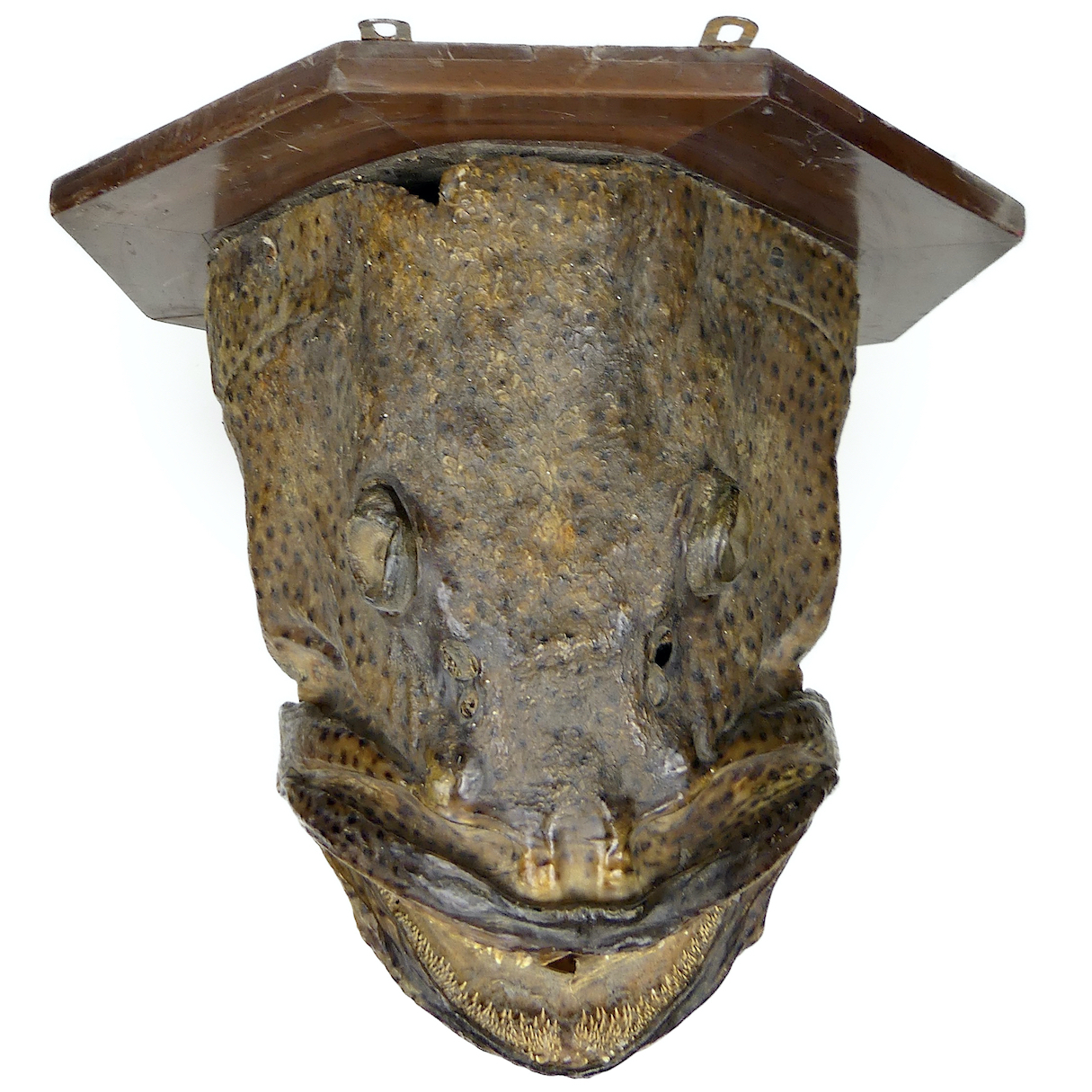 Grande tête de mérou naturalisé sur socle – Trophée de poisson – XXe – Décoration murale – Cabinet de curiosités