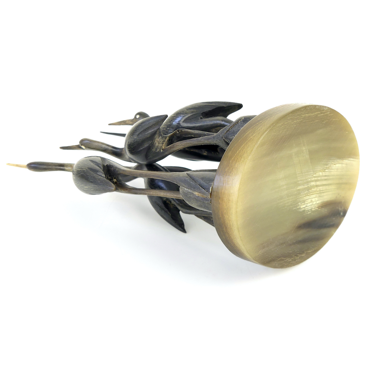 Groupe de six échassiers en corne de bovin, réalisé de façon artisanale, finement ciselé – Objet de décoration des années 50