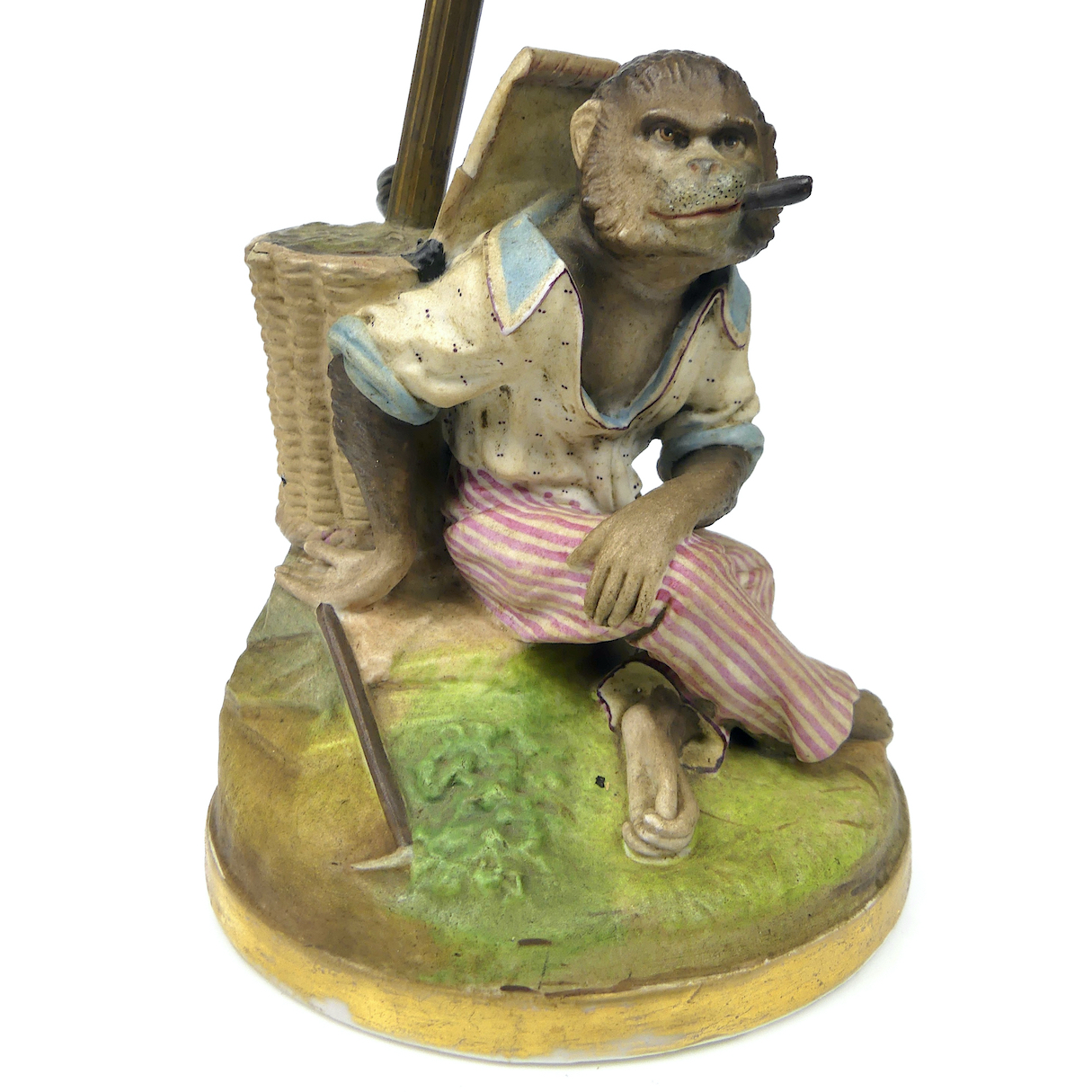 Lampe de table Singe fumant en céramique peinte, de la 1e moitié du XXe siècle, décorée à la main, et portant le n°129.