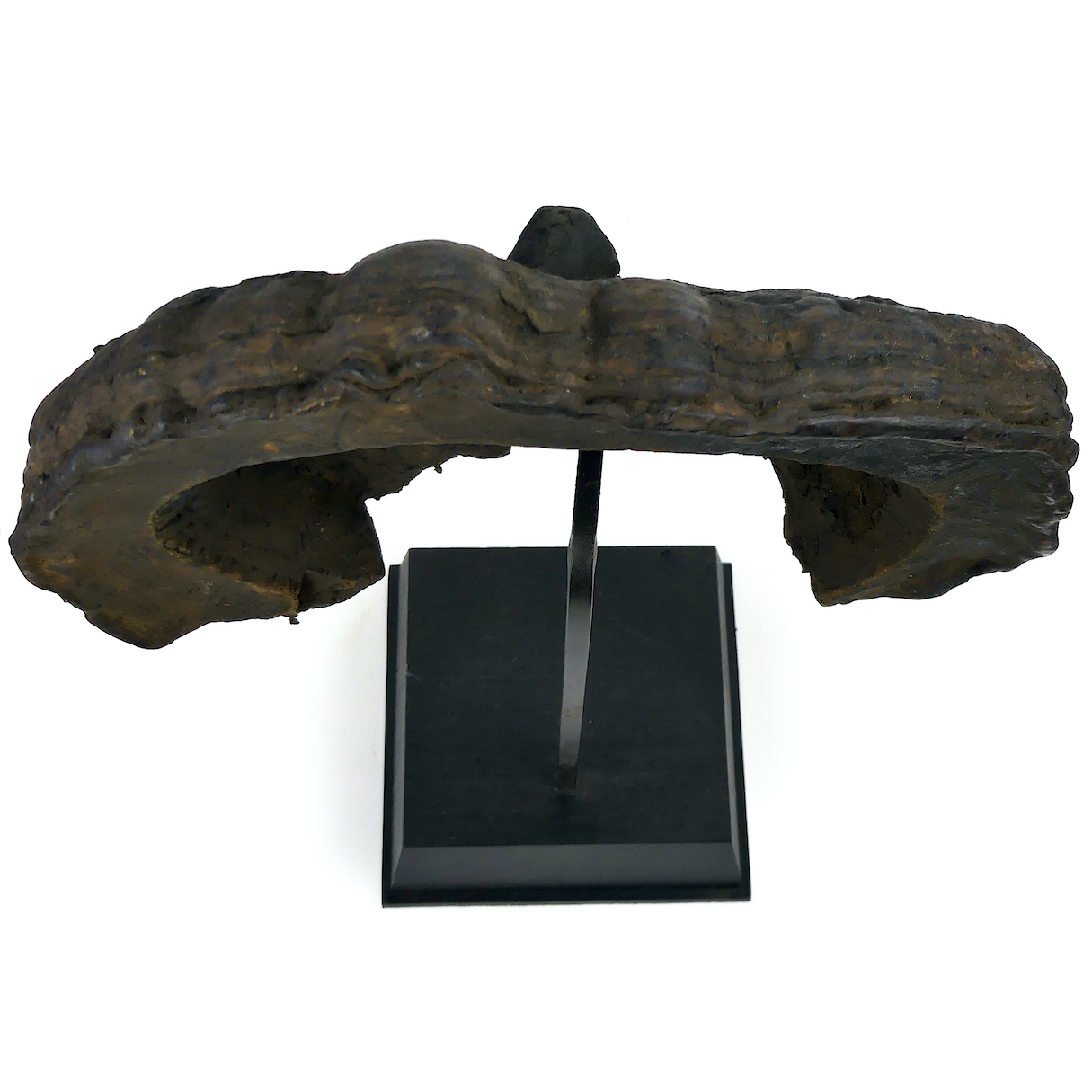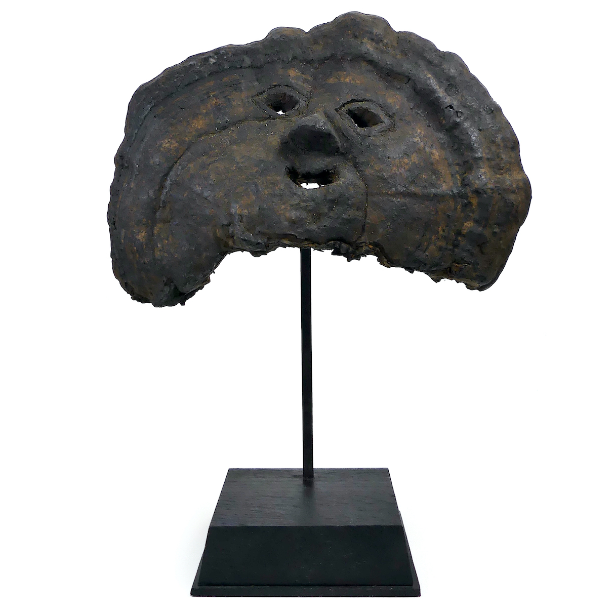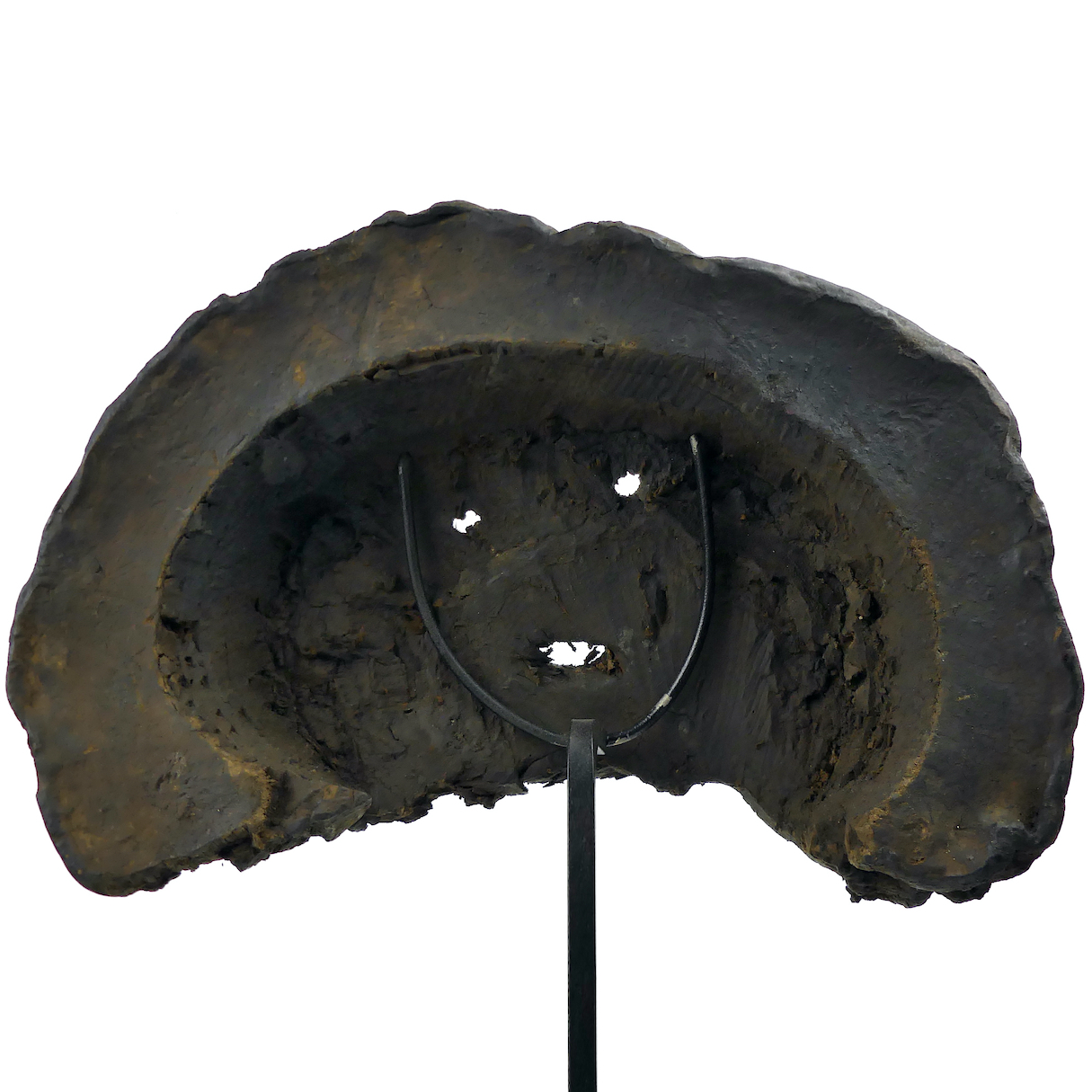 Masque de chaman népalais rare et ancien creusé dans un champignon Lingzhi sur socle en bois et acier noir – Himalaya – Masque de collection