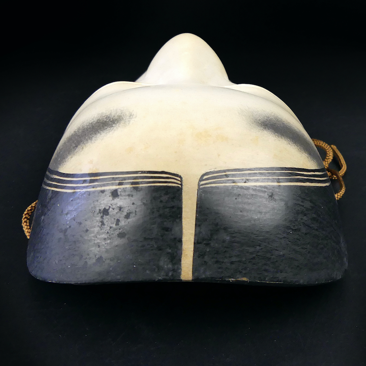 Masque Onnamen ancien signé, masque de femme, aux traits délicats et raffinés, en bois léger et laque sèche, finement décoré à la main.