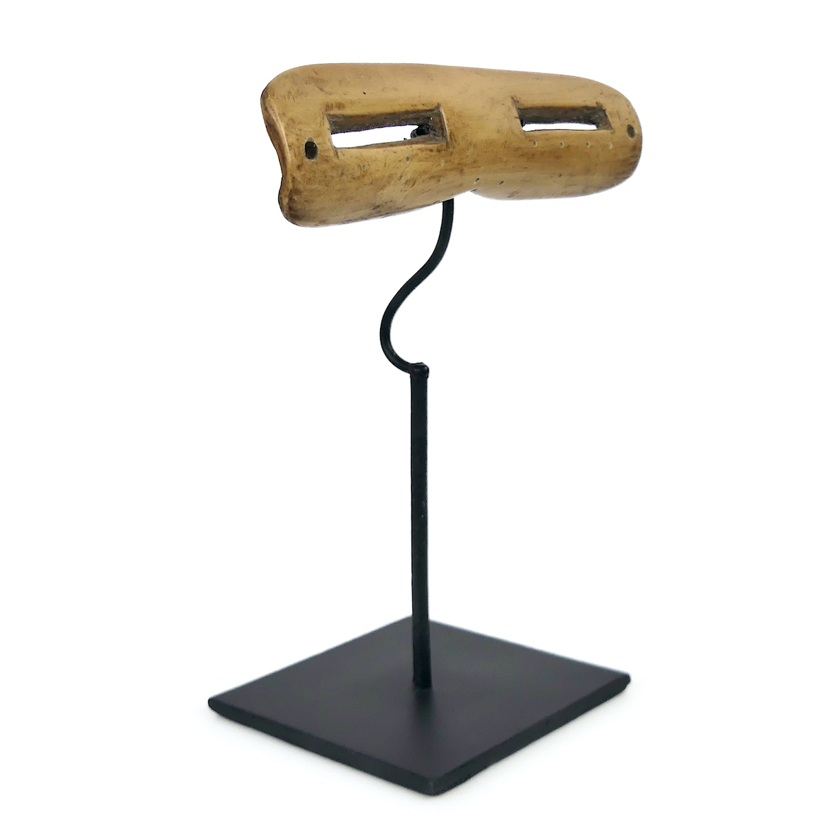 Nigaugek en os lunettes des neiges à fentes Yupik sur socle – Art Inuit Eskimo – Objet rare de collection