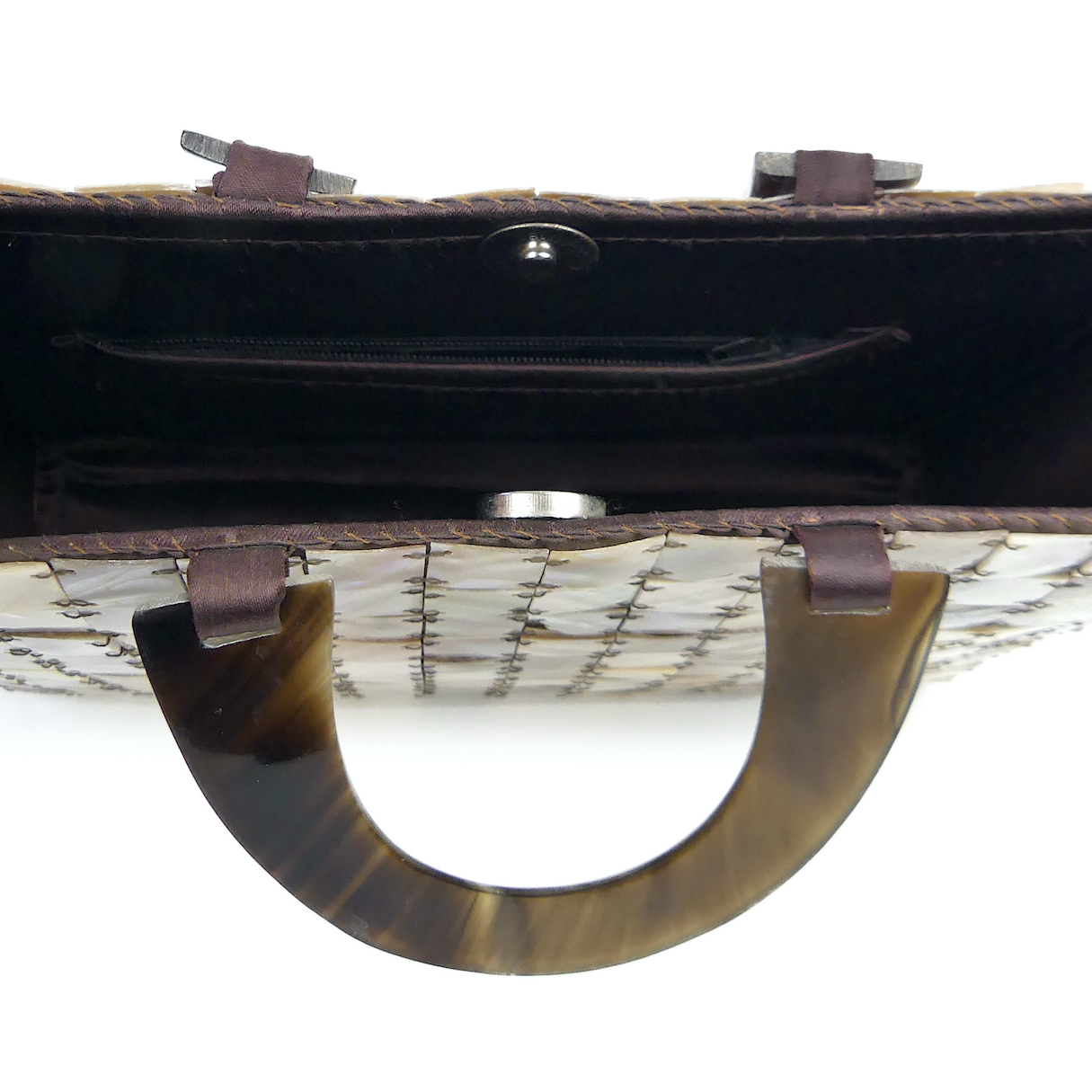 Petit sac de soirée en nacre corne et tissu marron satiné – Accessoire de mode – Fabrication artisanale