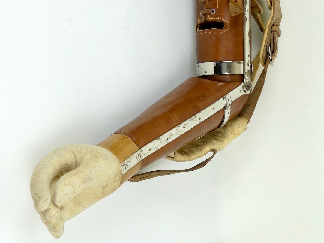Bras artificiel articulé (années 50) Épaule, bras, avant-bras, et sangles, en cuir clair et peau.