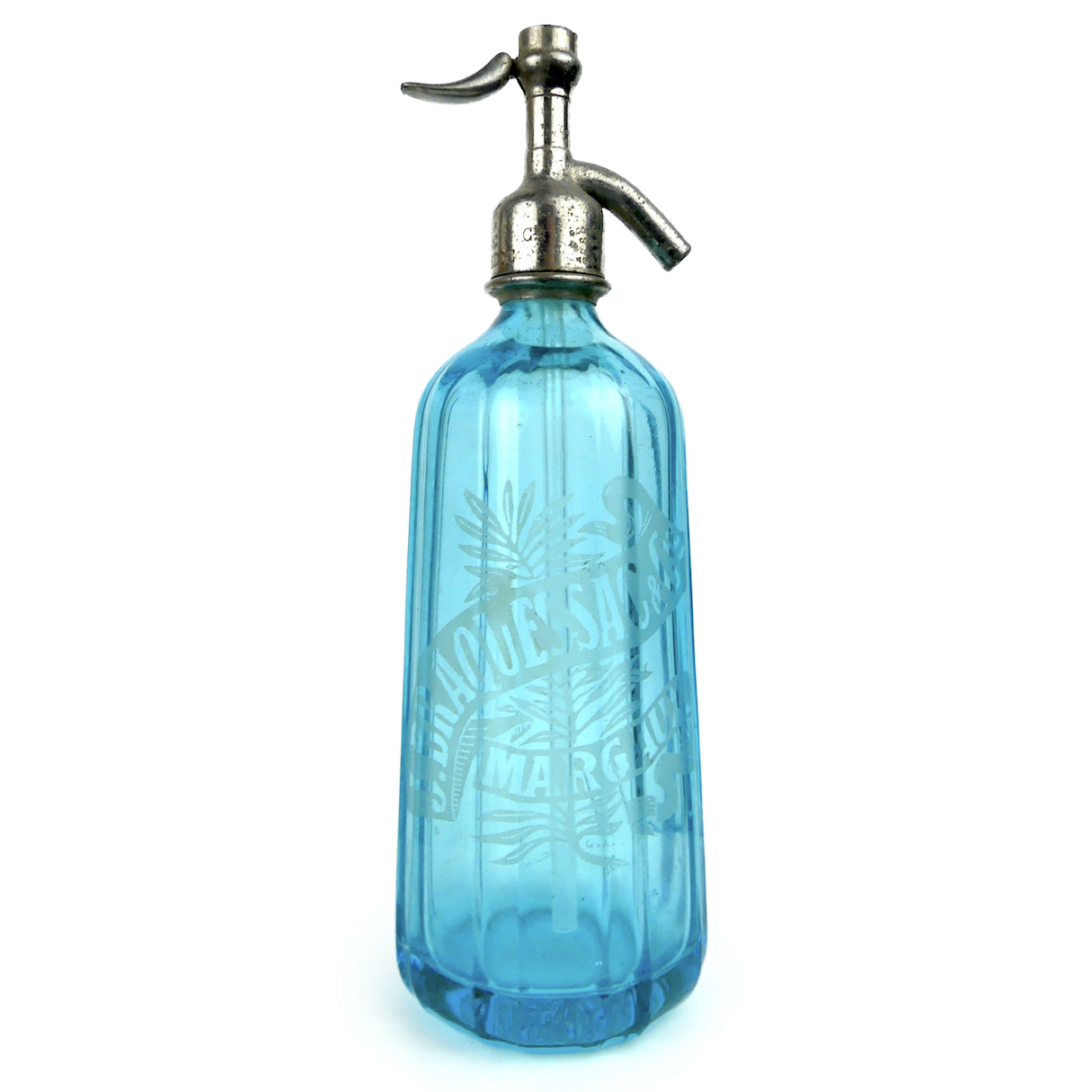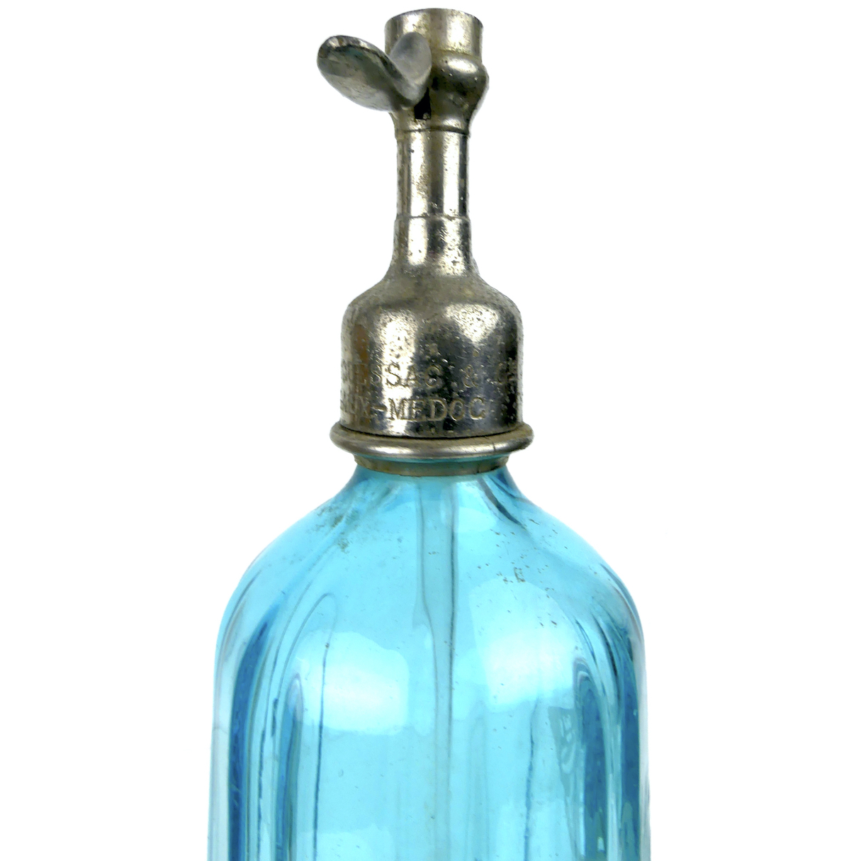 Siphon bleu en ouraline J.BRAQUESSAC & Cie – MARGAUX – Carafe à eau de Seltz – Bouteille de collection pour eau gazeuse en verre épais – Bouteille de collection