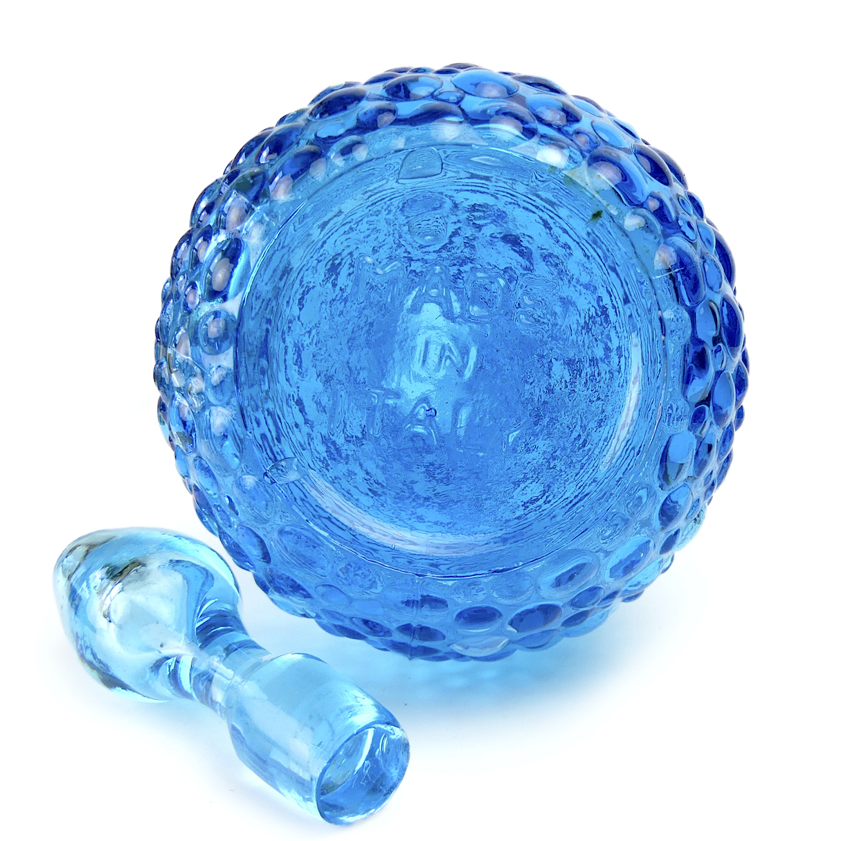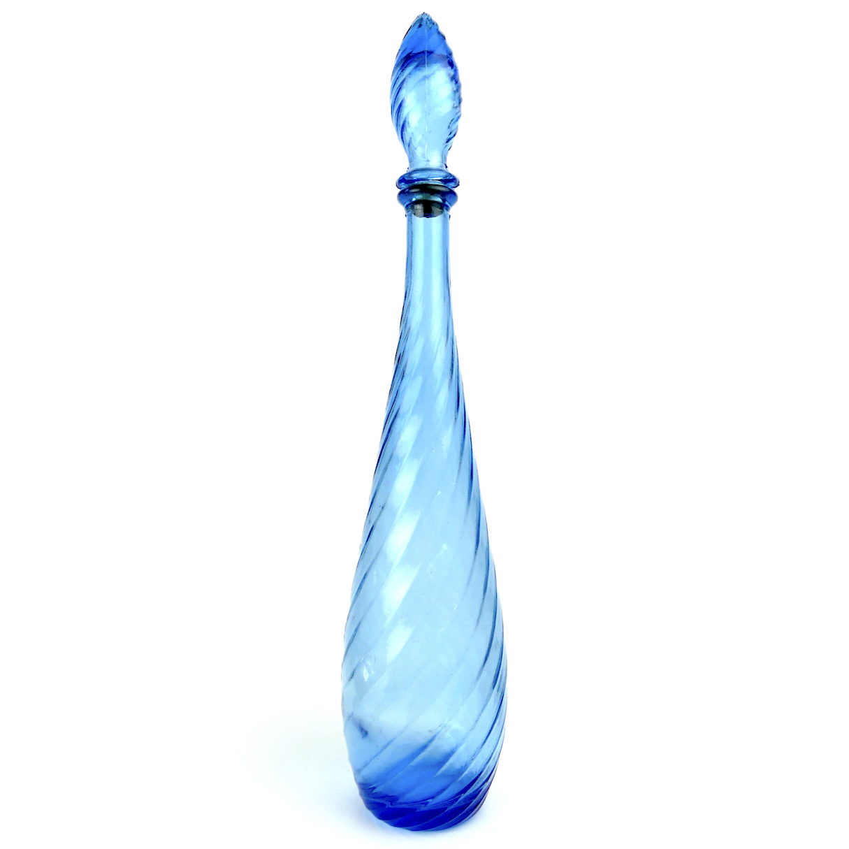 Trois carafes bleues italiennes avec bouchons flammes en verre d’Empoli – Mi-XXe – Art de la table – Italie