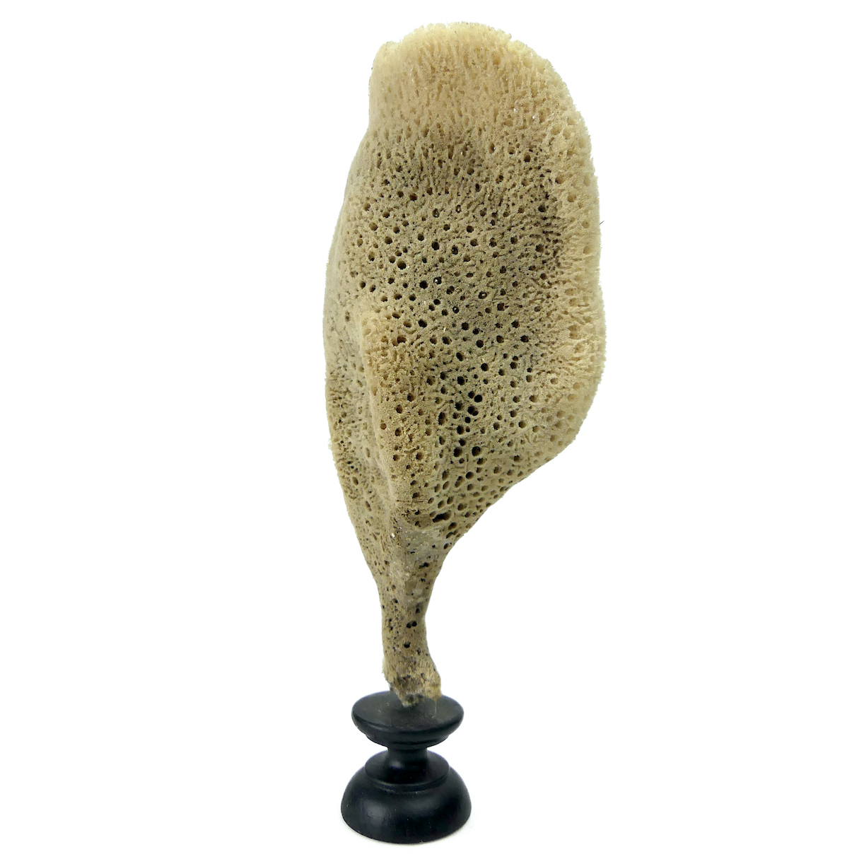 Trois petites éponges sur pied en bois tourné noir – Spongiaires – Porifera – Curiosités de la mer – Cabinet de curiosités
