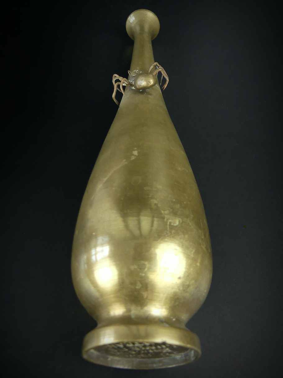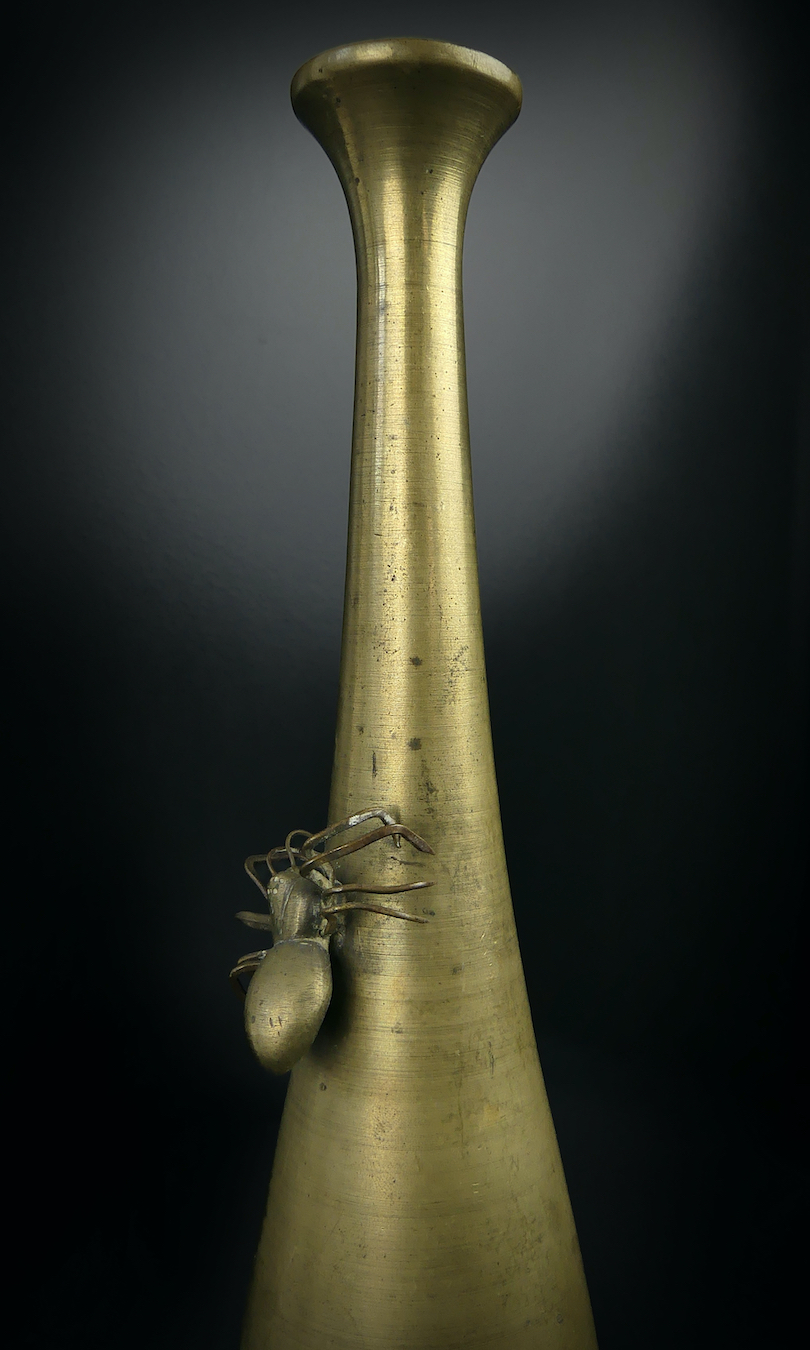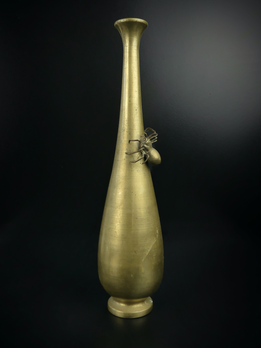 Vase soliflore araignée piriforme ancien en laiton à long col évasé – Curieuse déco – Curiosité – Art déco – Décoration d’intérieur