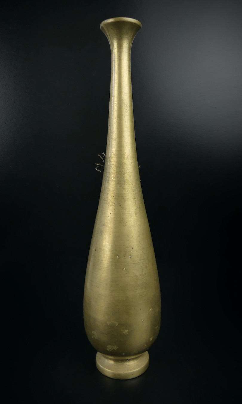 Vase soliflore araignée piriforme, élancé, élégant, à long col, évasé, légèrement bombé, en laiton – Début XXe
